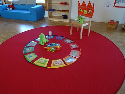 In unserem Haus gibt es die Öffnung mit Stammgruppen. Dies ist eine Variante des offenen Prinzips. Der Unterschied liegt darin, dass die Kinder einer festen Stammgruppe angehören. Die Kindergartenkinder treffen sich jeden Morgen zu einem gemeinsamen Morgenkreis, besprechen dort den Tag und entscheiden sich für Projekte, pädagogische Angebote und Aktivitäten. Danach können sie in der Gruppe spielen oder sich in einem anderen Gruppenraum bzw. Funktionsraum beschäftigen. Am Ende des Kitatages findet in der jeweiligen Stammgruppe der Abschlusskreis statt, um gemeinsam zu singen,zu spielen und den Tag mit den Kindern zu reflektieren.